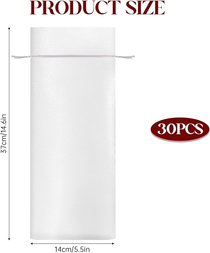 Trinkrittey 30 Pcs Organza Wine Bags 14.6" x5.5" White Organza Wine Bags Wine Bottle Gift Bags with Drawstrings Sheer Mesh Wine Gift Pouches for Wedding Festival Party Birthday