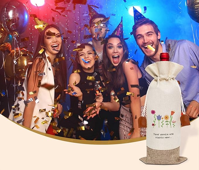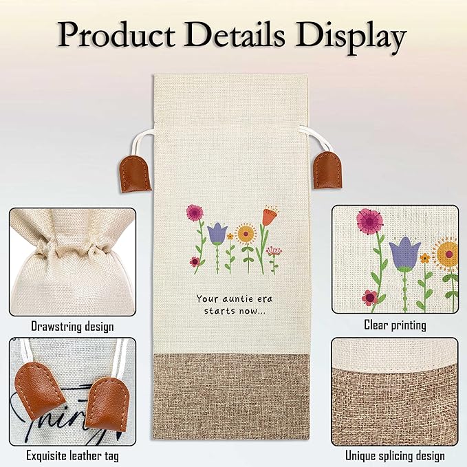 Funny Auntie Pregnancy Announcement Wine Bag, Wine Champagne Bottle Gift Bag, Cotton Linen Wine Gift Bag With Drawstring, Gift for Pregnancy Announcement, New Aunt Uncle for Baby Announcement-9