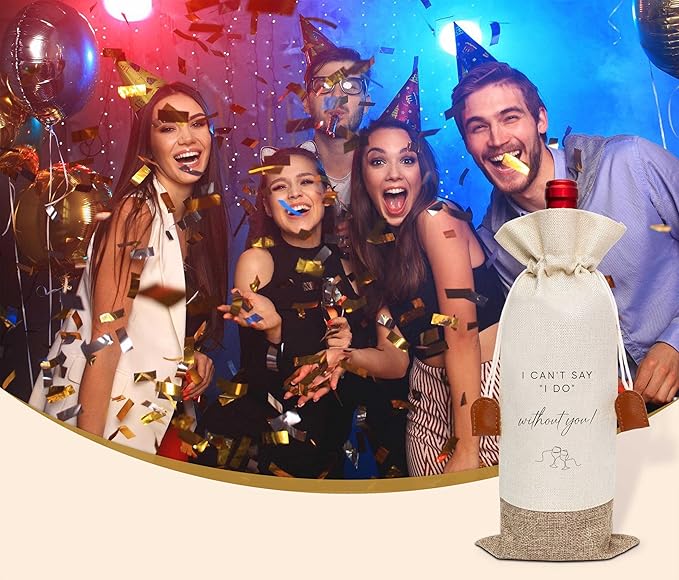 I Can't Say I Do Without You Wine Bag, Cotton Linen Wine Gift Bag With Drawstring, Wine Champagne Bottle Gift Bag, Bridesmaid Gift from Bride, Wedding Gift for Women Her Besties Friends-6