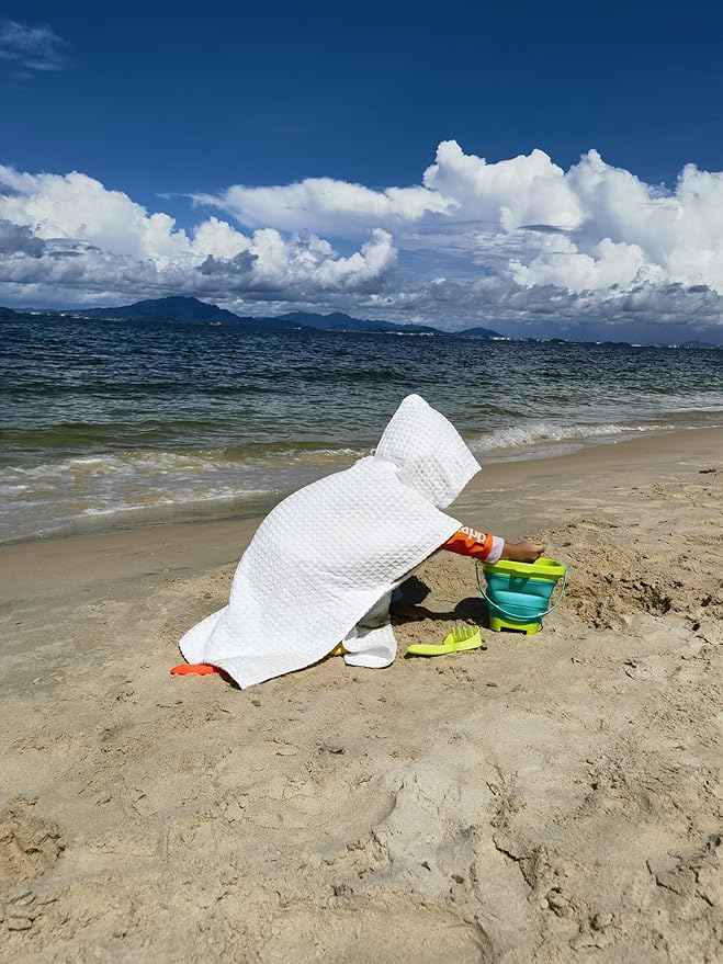- GREAT SIZE FOR 0-4 YEARS: 48"x22" in full-length and 24"X22" in folded-size with a 10"(W)x10(H)" hood. The poncho towels are suitable for 0 to 4 years old growing babies and kids.