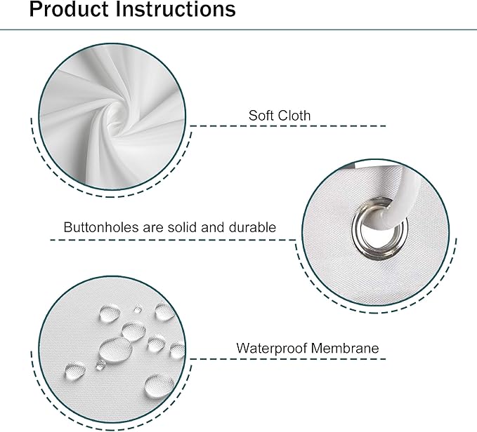 - ▶What' s Included: Each fabric shower curtain features 12 high-quality plastic hooks.
