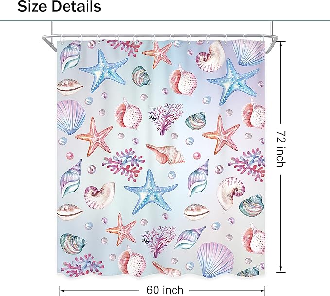 Starfish Seashell Shower Curtain 60Wx72L Inch Ocean Sea Underwater Coastal Nautical Marine Sealife Shower Curtain Bathroom Set Tropical Coral Plant Bath Curtain Bathtub Accessories Home Decor