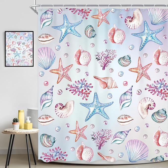 - ▶Unique Design: Designed with starfish and seashell pattern printing technology, vibrant and vivid, give your bathroom a new feel.