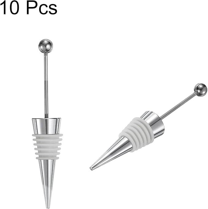 uxcell 10 Pcs Bead Wine Bottle Corks, Wine Stopper Cork, Wine Stopper, Reusable Wine Bottle Corks Sealing Plug Bottle for Beverage Holiday Party Bar,Silver/White