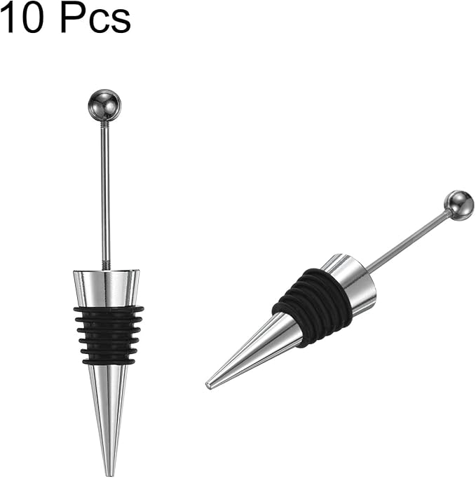uxcell 10 Pcs Bead Wine Bottle Corks, Wine Stopper Cork, Wine Stopper, Reusable Wine Bottle Corks Sealing Plug Bottle for Beverage Holiday Party Bar,Silver/Black