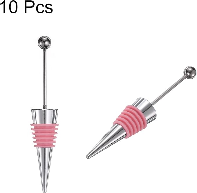 uxcell 10 Pcs Bead Wine Bottle Corks, Wine Stopper Cork, Wine Stopper, Reusable Wine Bottle Corks Sealing Plug Bottle for Beverage Holiday Party Bar,Silver/Pink