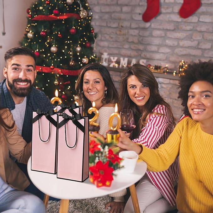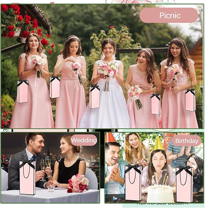- Elegant Design: our champagne gift bags come in a stylish pink and black color, suitable for any occasion; They are designed to securely hold your gifts and withstand the weight of a wine bottle