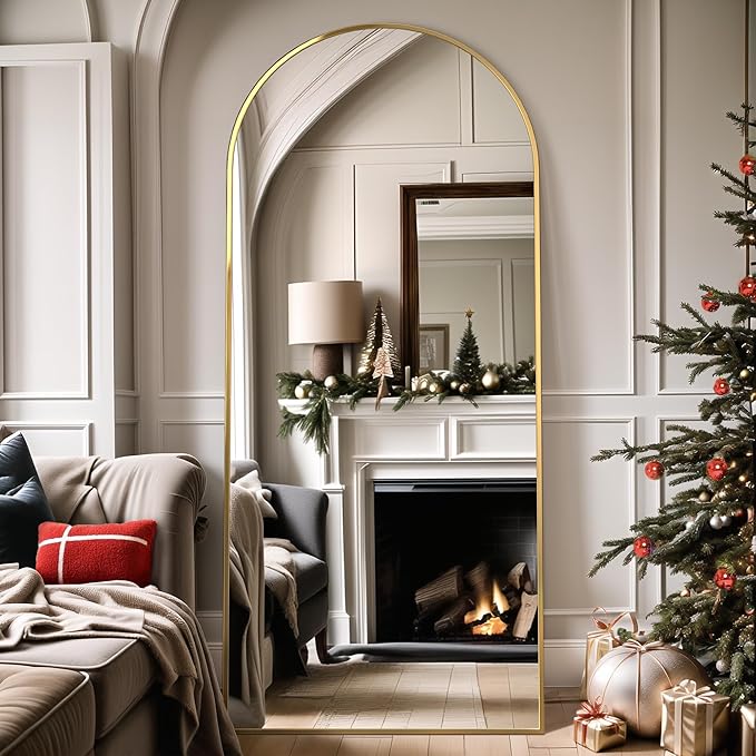 Antok 72"L x 44"W Contemporary Gold Floor Mirror, Oversized Full Body Mirror, Floor Standing, Hanging Mounted for Bedroom, Living Room, Cloakroom