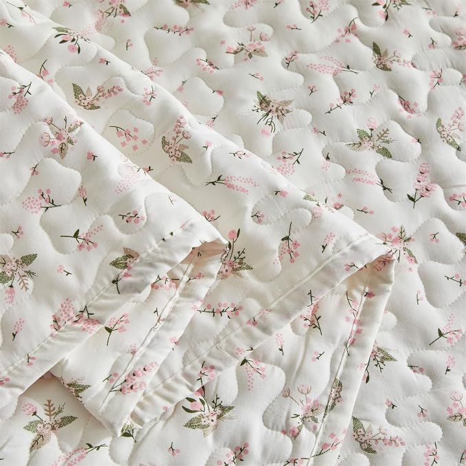 mixinni Floral Quilt Set King Cute Pink Flower Printed Quilted Bedding Set, Soft Aesthetic Floral Lightweight Bedspread Coverlet Set with Shams for All Season-(92"x106", 1 Quilt+ 2 Pillow Shams)