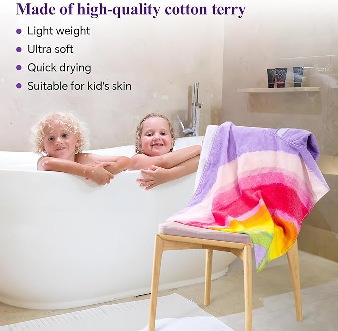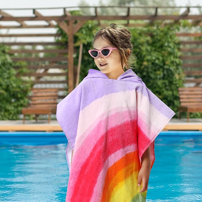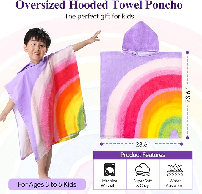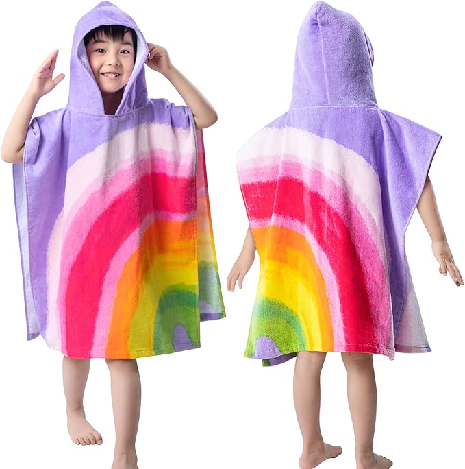 - Super Soft Rainbow Poncho - The poncho is made from 100% high-quality cotton, it is significantly more comfortable to wear compared to polyester alternatives. The natural cotton fibers are softer and more breathable, providing superior comfort and better protection for your kid’s skin.