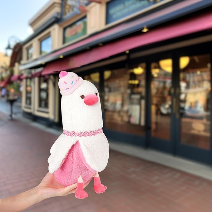 PEACH CAT Banana Duck Plush Pillow with Cherry Cake Hat Banana Duck Stuffed Animal Gift for Girls Boys White and Pink 12"