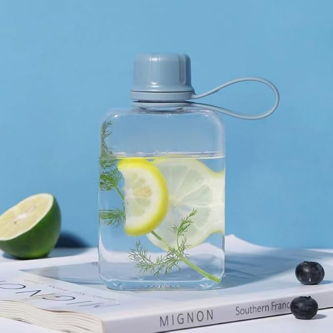 Flat Water Bottle Travel Flask Portable 8.2 oz BPA Free Tritan Square Water Bottles Leakproof Slim Water Bottle for Purse Travel Pocket Sports Fitness (Blue, 8.2 OZ)