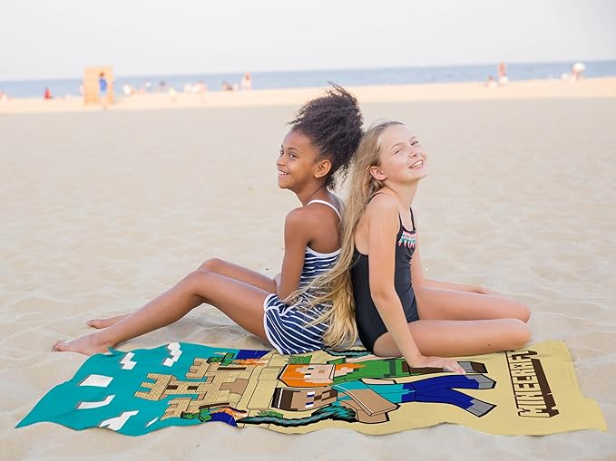 - SUPER SOFT & ABSORBENT - Minecraft beach towel measures 28 x 58 inches and features Alex and Steve. This towel is made from 100% cotton terry ensuring softness and comfort. Breathable fabric allows for absorbency while also being cozy to touch.