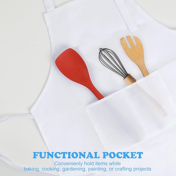 • Functional Kids Apron : Our aprons feature an adjustable neck strap and a quick tie in the back to fit kids of all ages, sizes and shapes. The 2 front pockets is convenient for kids to hold cooking baking,craft, painting tools