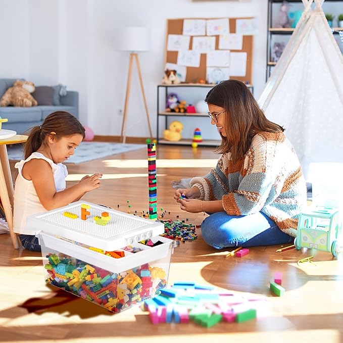 - ❤Building Blocks Baseplate Lids - Our storage box has creative block baseplate lids that are compatible with most bricks, you and your children can build a variety of small particle building block toys and anything else you can imagine. It integrates storage and construction, saving space and making storage more convenient.