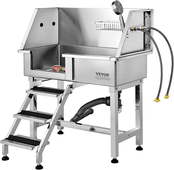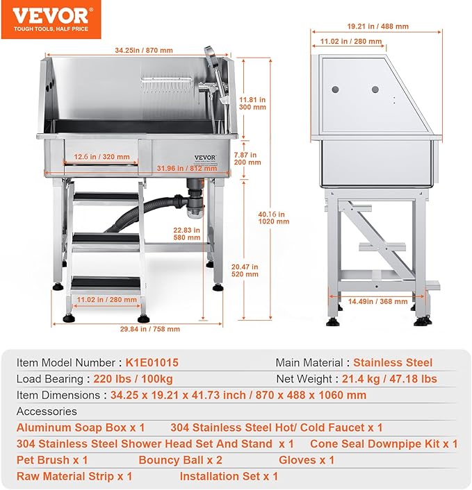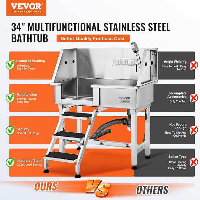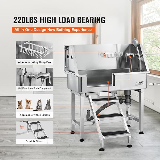 - 34" Seamless Welding: Multi-functional integrated design, seamless welding without water leakage issues. Safe and non-slip, with a weight capacity of 220 pounds. Making pet care easy and safe. The ideal choice for professional pet groomers and pet lovers.