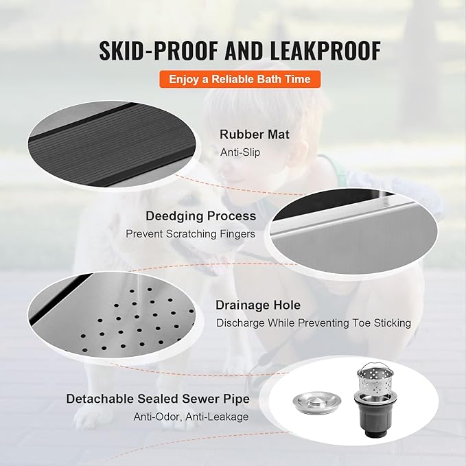 - Leak-proof and Scratch-resistant: Thoughtful details provide you with all-around safety. Equipped with anti-slip mats to prevent pets from slipping, the bathtub's edge-cutting process prevents hand scratches, and the drainage hole and drain pipe prevent odor backflow.