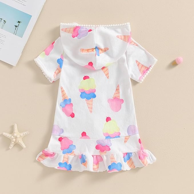 Toddler Beach Towel with Hood Kids Waffle Swim Cover Up Bath Towel Surf Poncho Boys Girls Hooded Beach Towel (White Ice Cream, 5-6 Years)