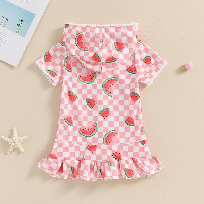 Toddler Beach Towel with Hood Kids Waffle Swim Cover Up Bath Towel Surf Poncho Boys Girls Hooded Beach Towel (Pink Watermelon, 3-4 Years)