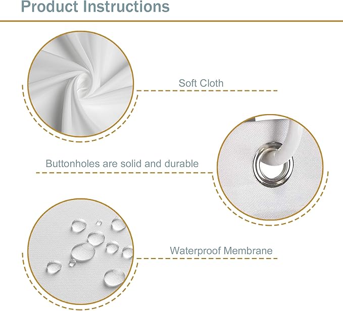 - ▶What' s Included: Each fabric shower curtain features 12 high-quality plastic hooks.
