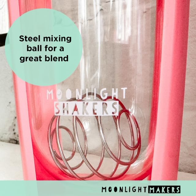 Moonlight Makers Pink 16oz Protein Shaker Bottle with Steel Whisk Ball, Leakproof Gym Bottle, Shaker Cups for Protein Shakes, Dishwasher Safe, Fitness Gifts, Preworkout Drink Mixer