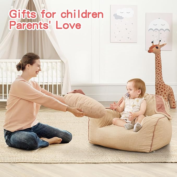 Rabbit Toddler Sofa, Toddler Bean Bag Chair with Carrot Pillow, Corduroy Kids Armchair, Comfortable Toddler Chair for Boys and Girls