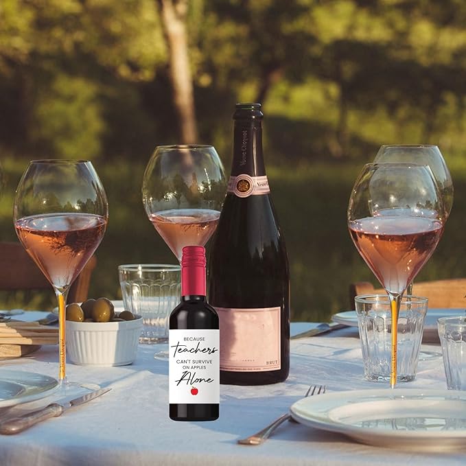 24Pcs Teachers Wine Labels, Teachers Gifts for Teachers, Teacher Retirement Appreciation Farewell Birthday Gifts, Because Teachers Can't Survive On Apples Alone Mini Wine Bottle Stickers Labels
