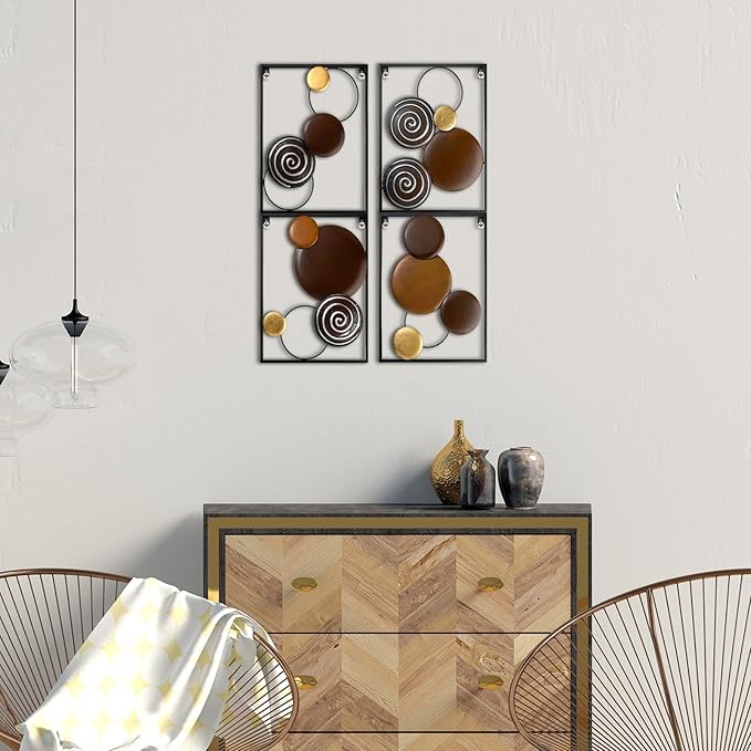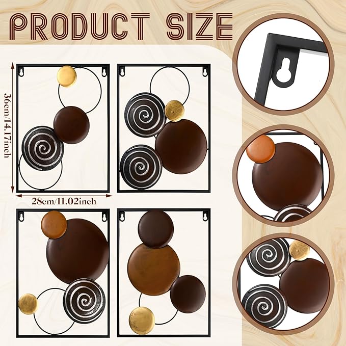 - Package of 4 for a Complete Set: this beautifully designed set comes with 4 metal wall art abstract decorations in gold and brown, in rectangle, giving you ample pieces to adorn your home; Whether you choose to display them as a set or spread across different rooms, they ensure a harmonious theme and a modern look in your bedroom, living room, office, dining room, exhibition hall and more