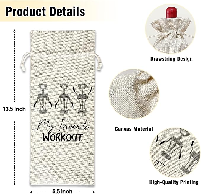 My Favorite Workout - Wine Canvas Bag, Funny Wine Gift Bag, Birthday Gifts for Women Coworker Wine Lover Gifts Wine Bags for Wine Bottles, Wine Gifts With Drawstring Holiday Party Decoration -WB29