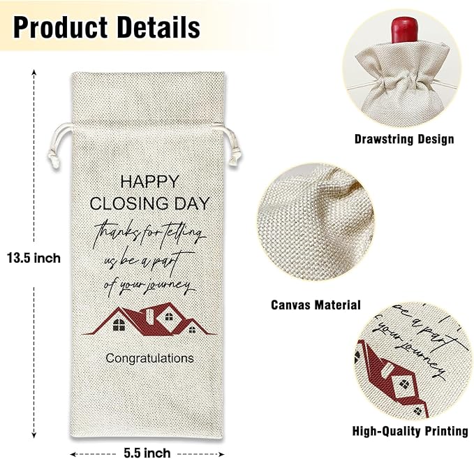 Wine Canvas Bag, Housewarming Gifts Wine Gift Bag, House Warming Gifts New Home Gifts for Friends New Homeowners Gifts Wine Bags for Wine Bottles, Wine Gifts With Drawstring Party Decoration -WB32