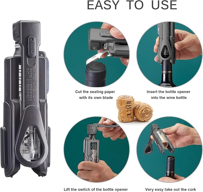 - Multi-Function Opener: 3 in 1 of corkscrew wine opener, wine corkscrew with foil cutter and beer opener.