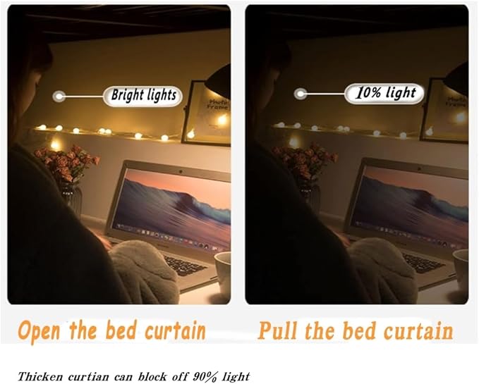 - 🌛Easy instillation:The ropes need to be fixed on the frame of the bunk bed, and the plastic rings combine the rope and the length edge of the curtain. the curtain can be fluently pulled to be convenient for entering and out.