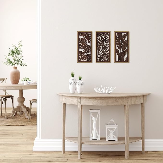 HPNIUB 3PCS Tropical Wall Decor, Rustic Palm Leaf Wooden Sign for Bathroom, Vintage Leaf Plant Hanging Wood Plaque Wall Art Nature Picture for Home Office Living Room Decoration(8x16Inch)