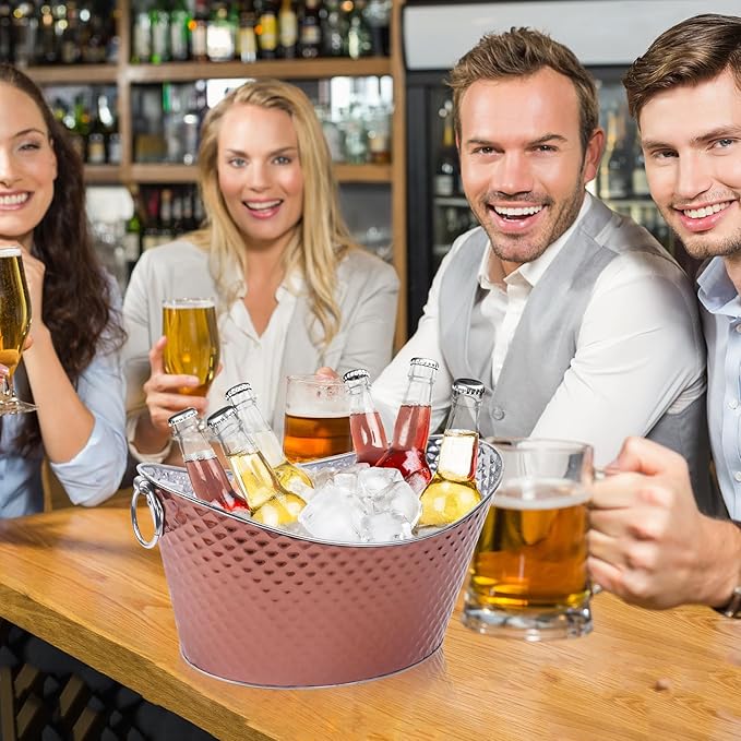 Klmnop Large Ice Bucket, 12L Stainless Steel Beverage Tub with Handles, Rose Gold Drink Tub&Drink Buckets for Parties(RoseGold)