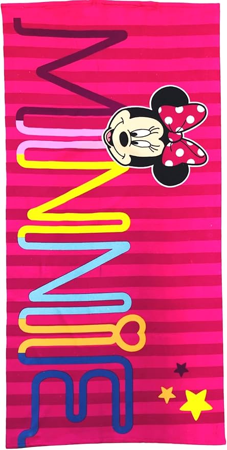 Kids Official Licensed Character Soft Beach/Hooded Bath Towel (Minnie Stripe, 40 x 60)