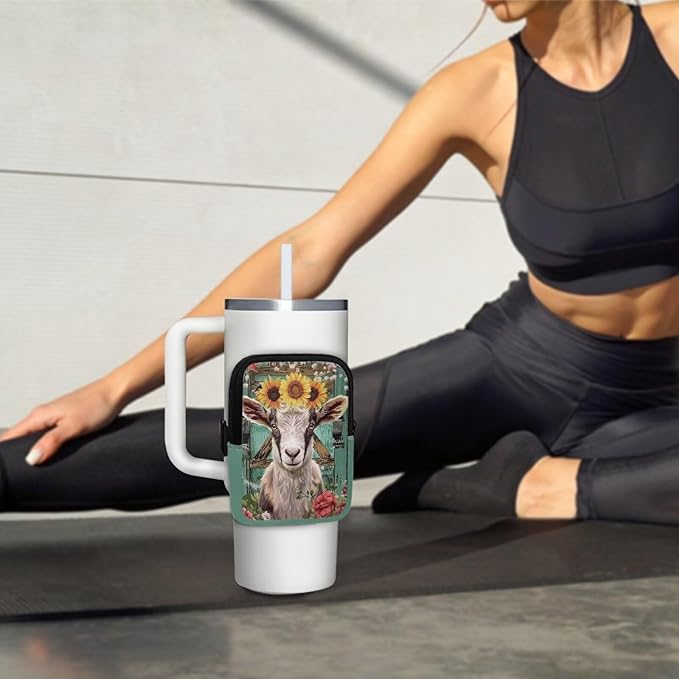 Goat Sunflower Stanley Cup Pouch with Adjustable Strap Water Bottle Storage Bag 20oz-40oz IceFlow Tumbler Pouch for Stanley Accessories
