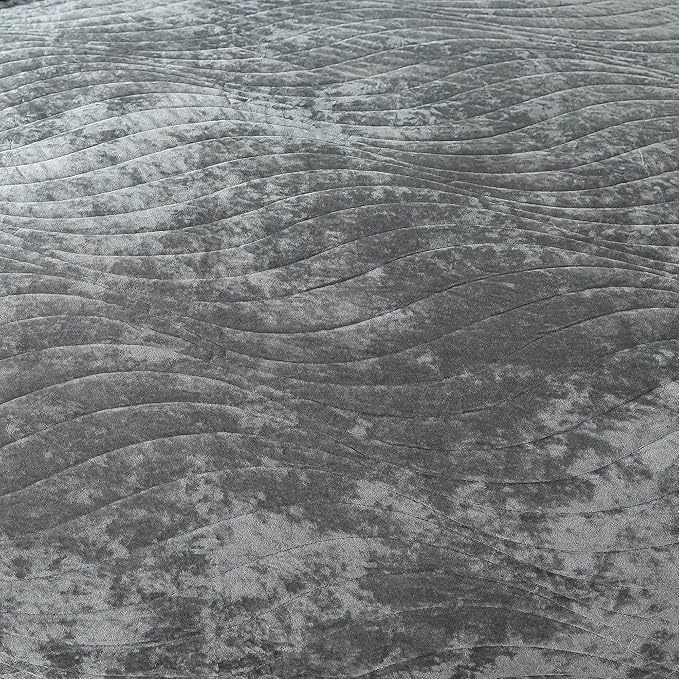 HoneiLife Velvet Quilt Sets King - Lightweight Bedspreads 3-Pieces, Stripe Coverlets Rustic Bed Cover King Quilt Bedding Sets for All Season Use, Grey
