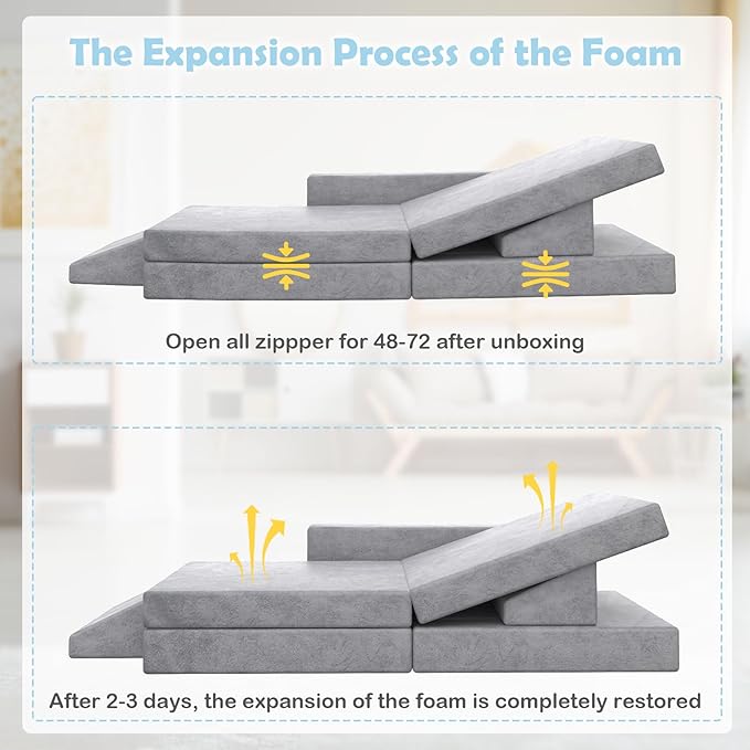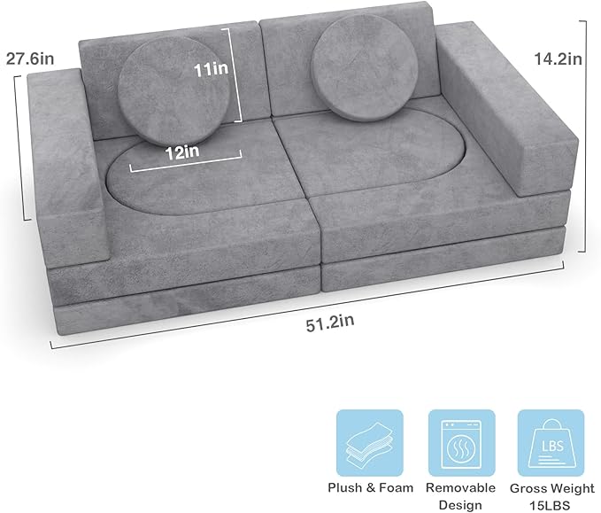 - 【12PCS New Modular Kids Sofa】Our 12-piece modular kids play couch offers 6 different shapes and 12 foam blocks that can be endlessly combined, inspiring children's imagination and creativity. Enjoy the kids' sofa by transforming it into various functions. Children's toy sofas can be a rocket, convertible car, a tent, a church, a scooter, a castle, a slide, a sofa, a bed lounge, or anything else children can imagine