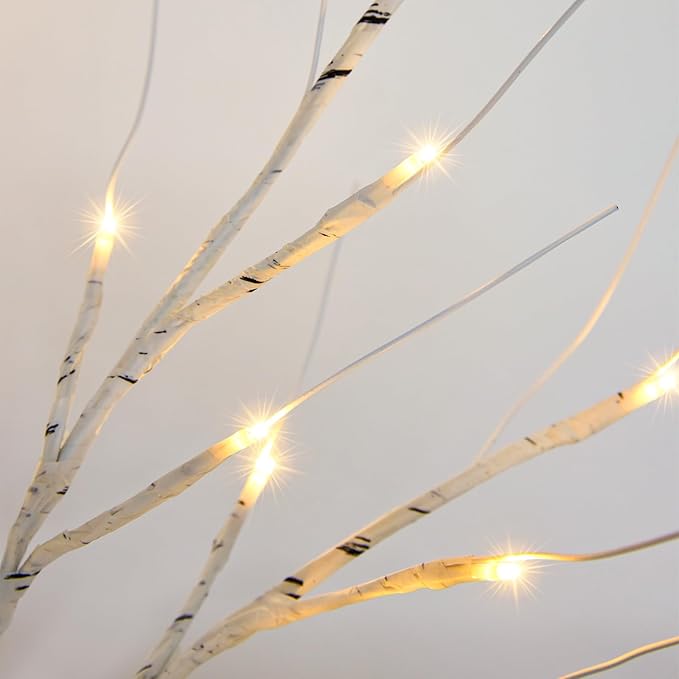 - Reusable Birch Tree Lights : Each birch tree feature 24 warm white LED lights. Flexible branches make it easy to hang ornaments. The bulbs have a long life of up to 25,000 hours, so you can enjoy them year after year