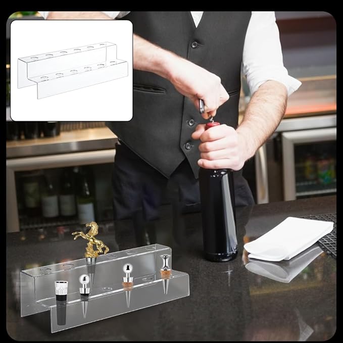 - Reusable and Easy to Clean -- Our acrylic wine stopper holders can be used for a long time; they are elegantly designed to make cleaning a breeze, and they are covered with a protective film to protect the surface from scratches