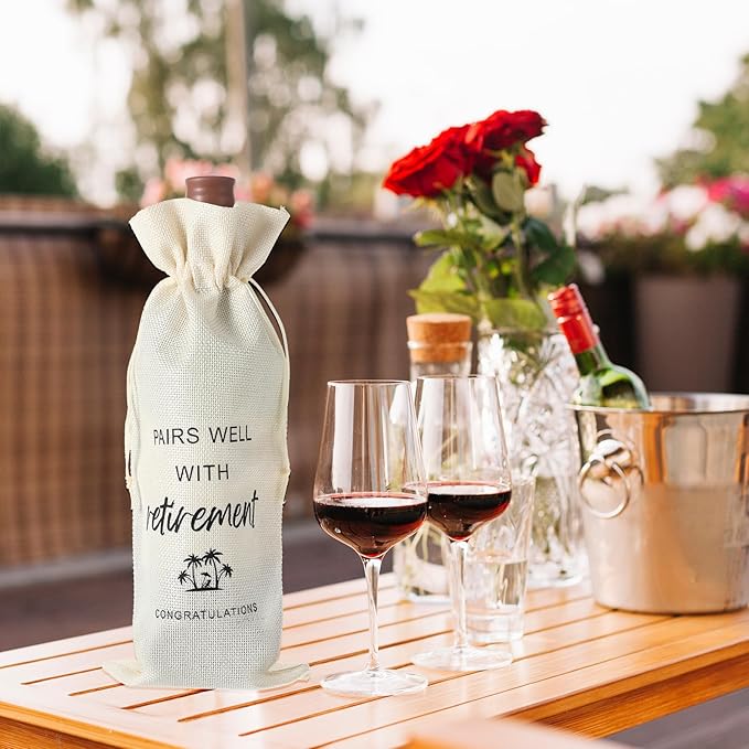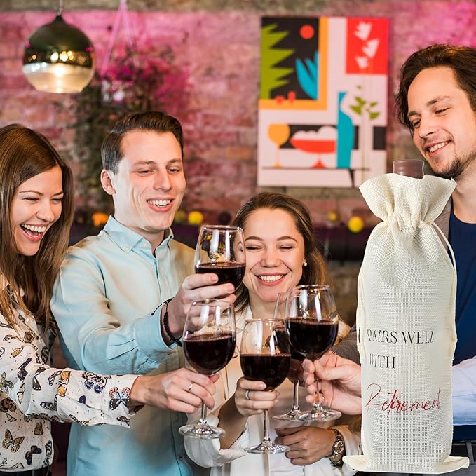 - 【Multi-purpose and Reusable】This retirement gift bags for men women can not only be used to decorate wine bottles, but also can be filled with small gifts, suitable for women, men, family, friends, sisters, colleagues, bosses, etc., hand washable or machine washable, durable and reusable.