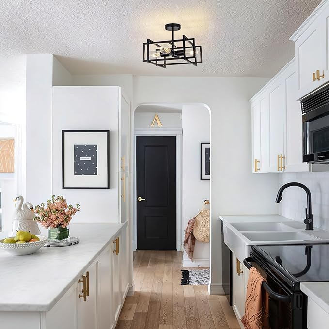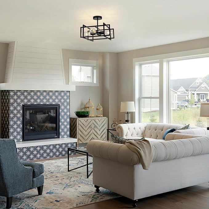 - Modern & Industrial Design:This industrial farmhouse semi flush mount ceiling light features a distinctive open rectangular frame design with a 4-light bulb holder. Its black finish provides a comfortable and cozy ambiance, blending farmhouse, industrial, modern, rustic, and vintage styles. Suitable for dining rooms, living rooms, bedrooms, kitchens, entryway,and more.