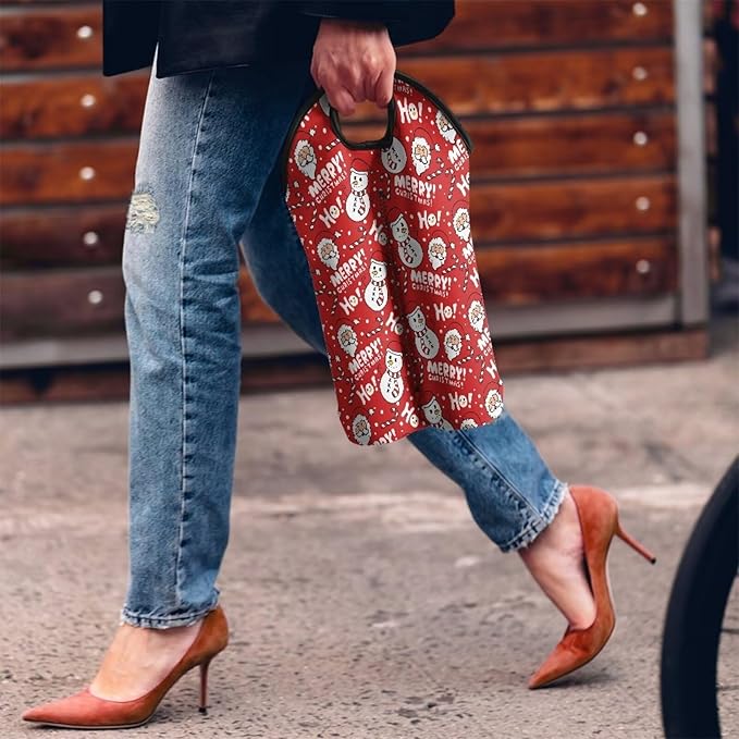 doginthehole Merry Christmas Wine Tote Bag for 2 Wine Bottles, Cute Santa Claus Snowman Wine Bag for Travel, Insulated Wine Carrying Bag with Handle, Gifts for Thanksgiving Christmas New Year