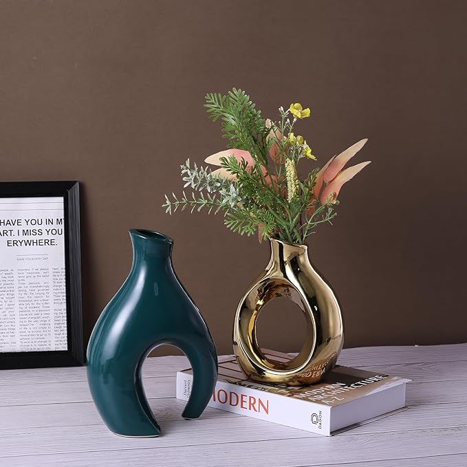 - 【Multi-functional Modern Home Decorative Vase】Minimalist decorative vase, as a vase full of design, looks exquisite both together and separately. You can use it in living room entrance, conference room, game room, TV cabinet, office bookshelf, bedroom, dining table centerpiece, living room fireplace decoration, farmhouse decoration and coffee table decoration or shelves above cabinets.