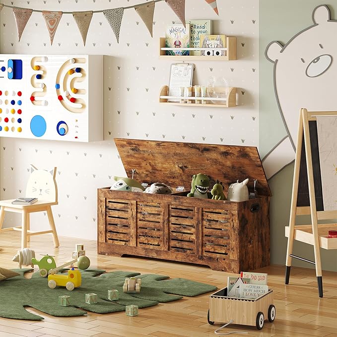 - 【Sturdy & Durable】The kids toy chest is made of safe engineered wood and superior craftsmanship. It is sturdy and durable to effectively prevent chemical reactions between the rubber staffs and the wood chest surface. Easy to wipe clean and upkeep. Your cost-effective choice