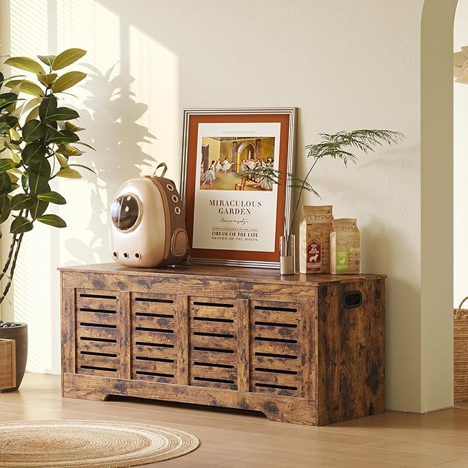 - 【Ideal Home Decor】Rustic brown and exquisite shutter doors of the blanket chest bring a perfect encounter of retro and elegance to your home. Vintage design fits with any home décor and brightens your room. It is well-suited for playroom, living room, bedroom, entryway, etc