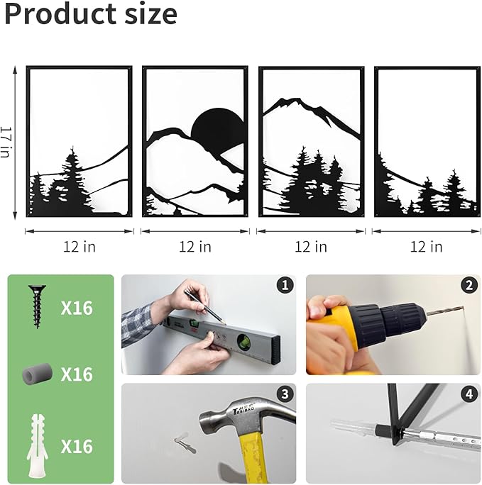 - Wall Art Set Size:Measuring 17 inches x 12 inches each, this wall art set is perfectly proportioned for various spaces. Ideal for living room wall decor or dining room wall decor, each piece is carefully packaged to ensure it arrives in perfect condition, with smooth edges and a rust-proof finish.