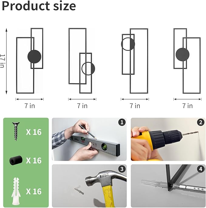 - Size for Wall Art: This Minimalist wall art set includes 4 pieces, each measuring 17 inches x 12 inches, making it ideal for a range of spaces. The pieces are carefully packaged, with smooth edges and a rust-proof finish. This wall decor set is perfect for enhancing any room in your home.