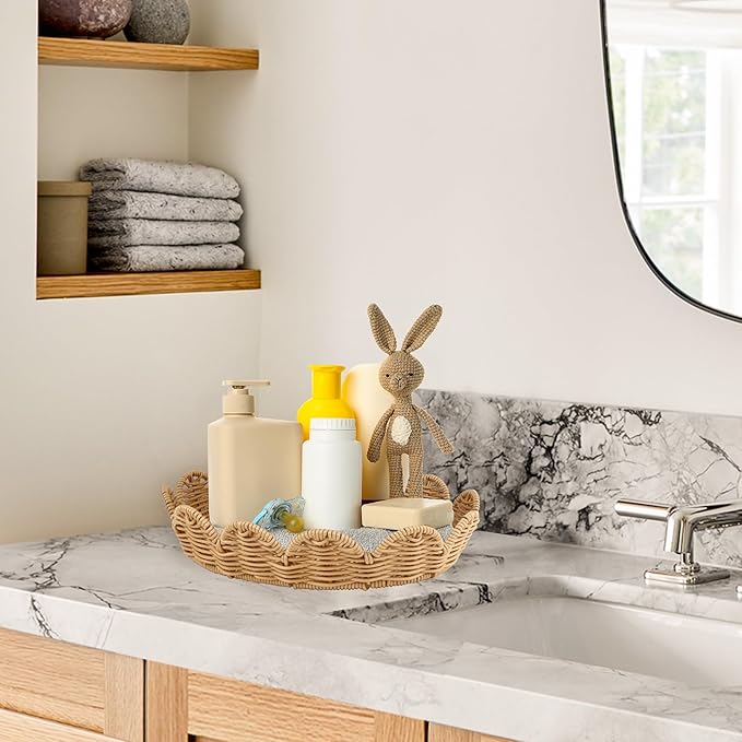 - Reliable Imitation Rattan Material: Our charming scalloped baskets are hand-woven from high-quality plastic and feature a sturdy coated steel frame. This combination ensures durability and strong support while providing an aesthetically pleasing look that brings a touch of natural warmth to your living space