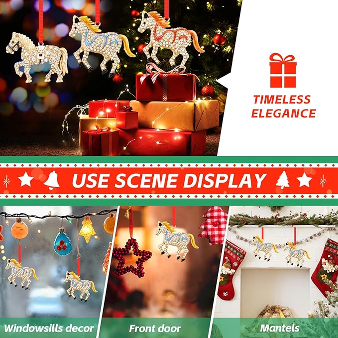 - 【Christmas Horse Decorations】: The horse Christmas ornaments are great Christmas decorations for trees. Also perfect as decorative hanging ornaments on doors, walls, windows, farmhouse, yards, fireplaces or anywhere you want to decorate. Add a personalized touch to your Christmas ornaments 2024.